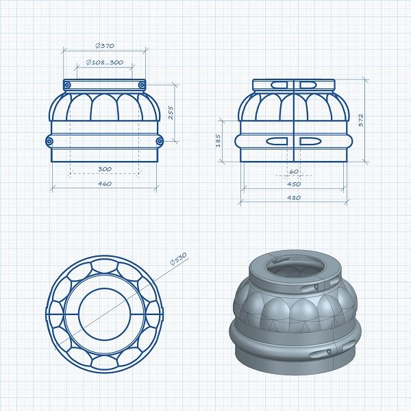 Стандарно, цоколи композитные ЦКП-7 выпускаются с горловиной 335 мм под диаметр трубы 325 мм. Для заужения горловины ЦКП-7 можно использовать переходное металлическое или композитное кольцо.